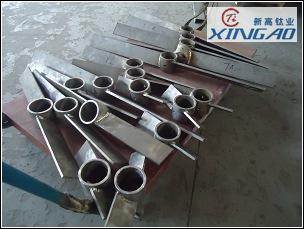 ④錨式攪拌器 槳葉外緣形狀與攪拌槽內(nèi)壁要一致(圖5),其間僅有很小間隙,可清除附在槽壁上的粘性反應(yīng)產(chǎn)物或堆積于槽底的固體物,保持較好的傳熱效果。槳葉外緣的圓周速度為0.5~1.5m/s,可用于攪拌粘度高達 200Pa·s的牛頓型流體和擬塑性流體(見粘性流體流動。唯攪拌高粘度液體時,液層中有較大的停滯區(qū)。